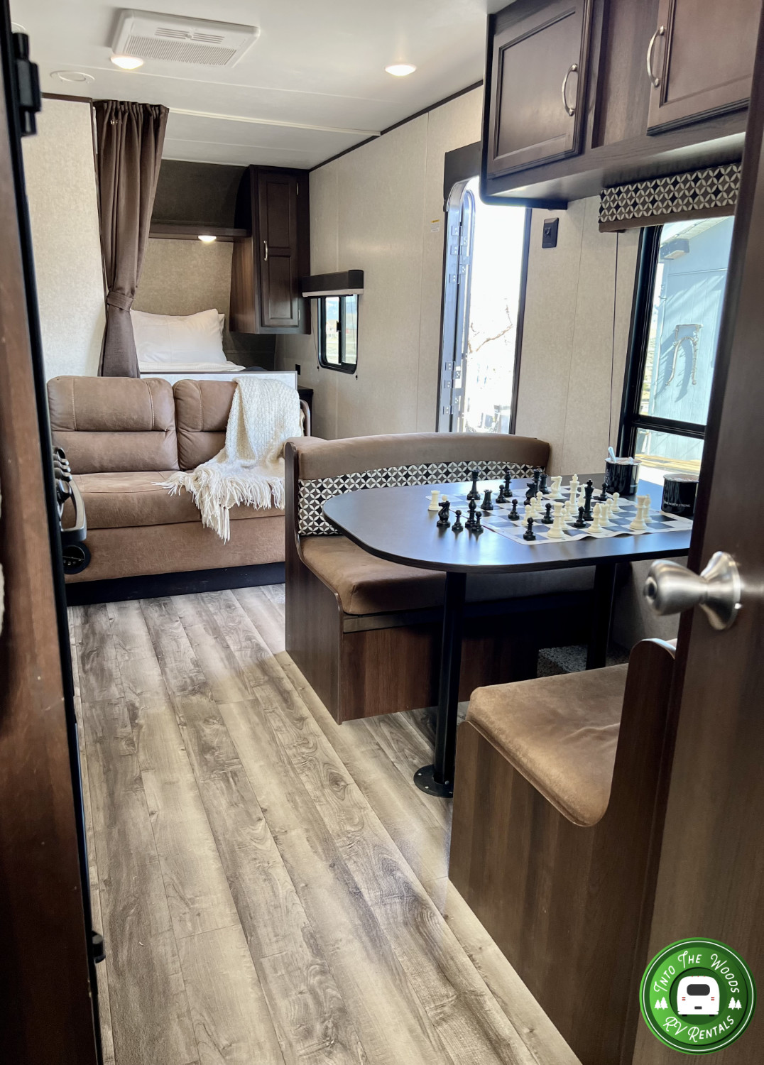 More compact than our other two spacious units, ideal for just 2 guests. Take advantage of your lovely location, park this unit so the massive back window is overlooking the view. Rear dinette and sofa make for a cozy sitting area.