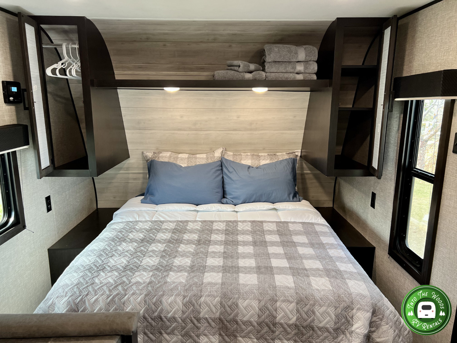 Trailer comes FULLY STOCKED with dishes, cookware, glassware, LINENS, BEDDING and PILLOWS, please see list of included items for specifics. We are PET FRIENDLY units (additional damage deposit is required) No need to clean after rental, just tidy up and dispose waste.